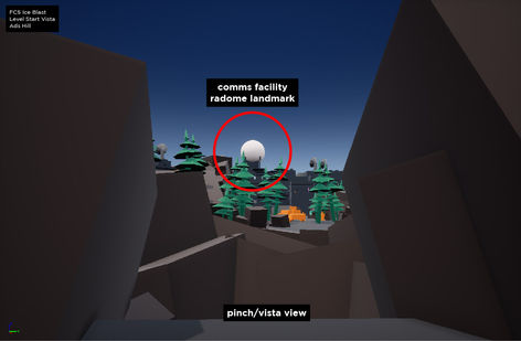 I used the rocky surroundings to frame the distant Radome structure letting the player know they're getting closer and which direction they generally want to be moving.